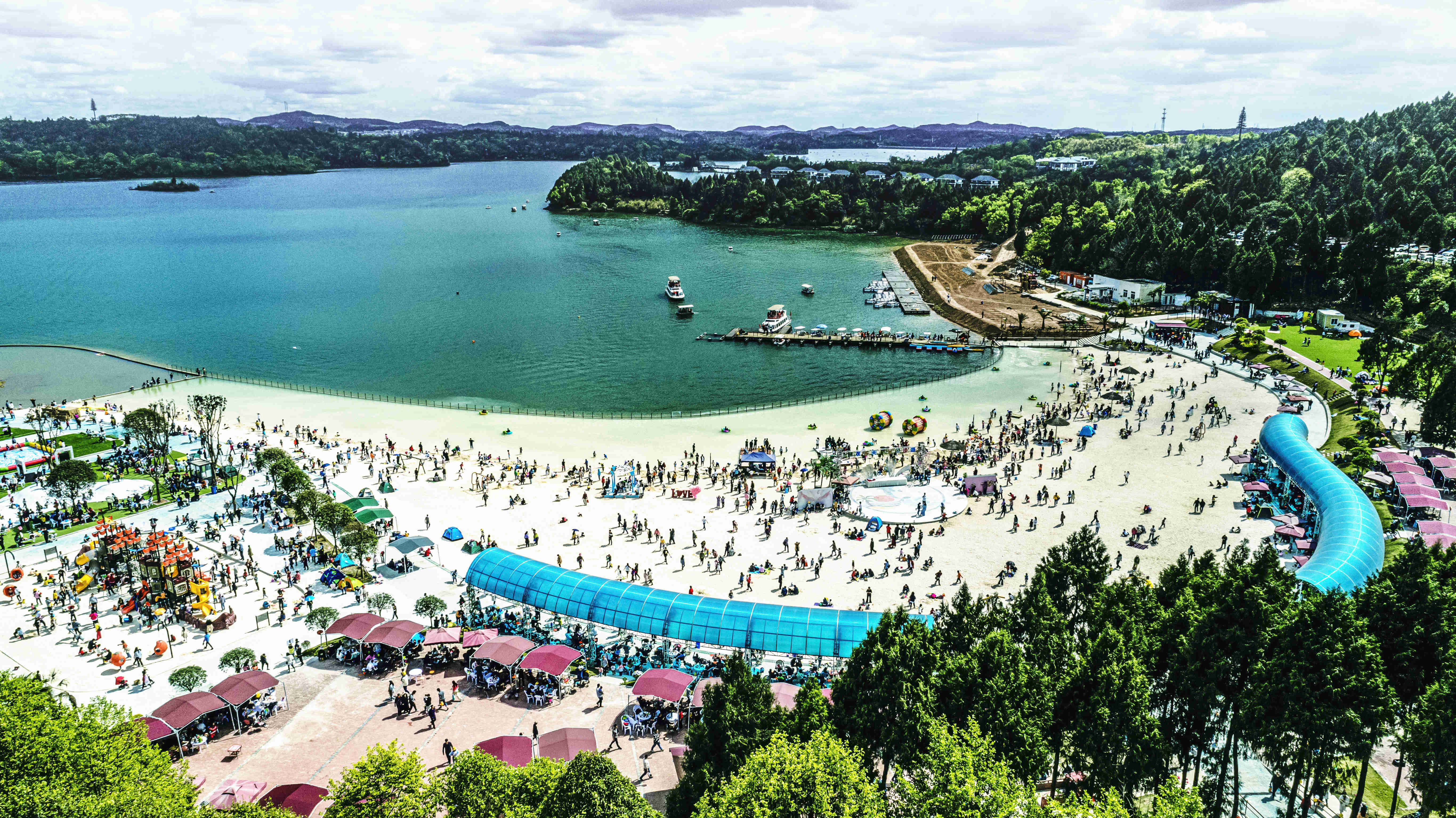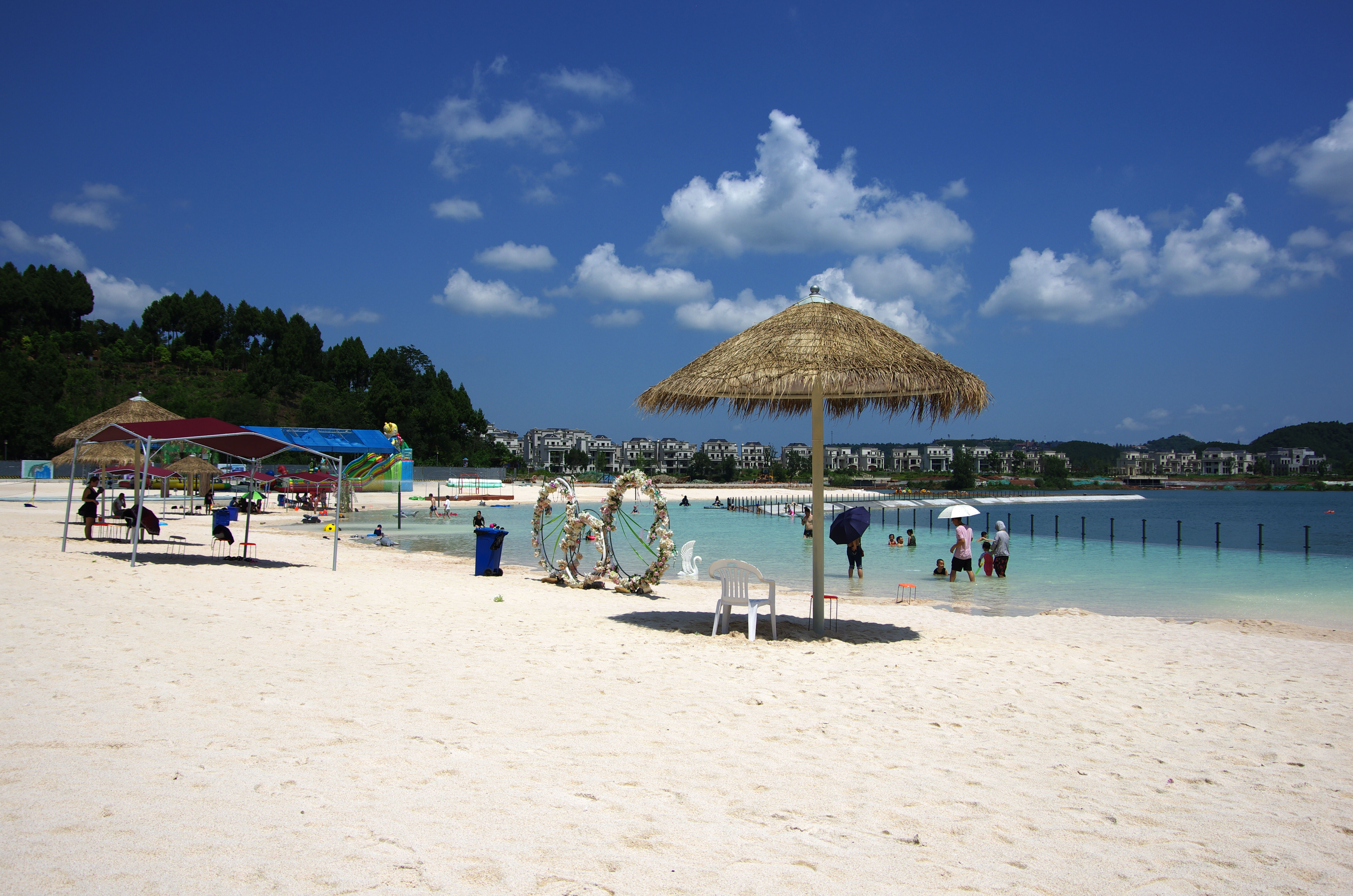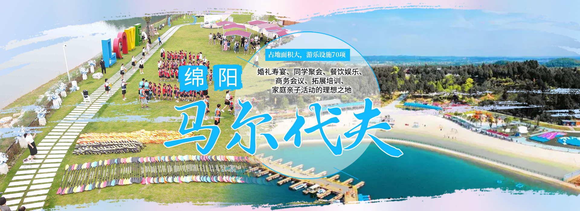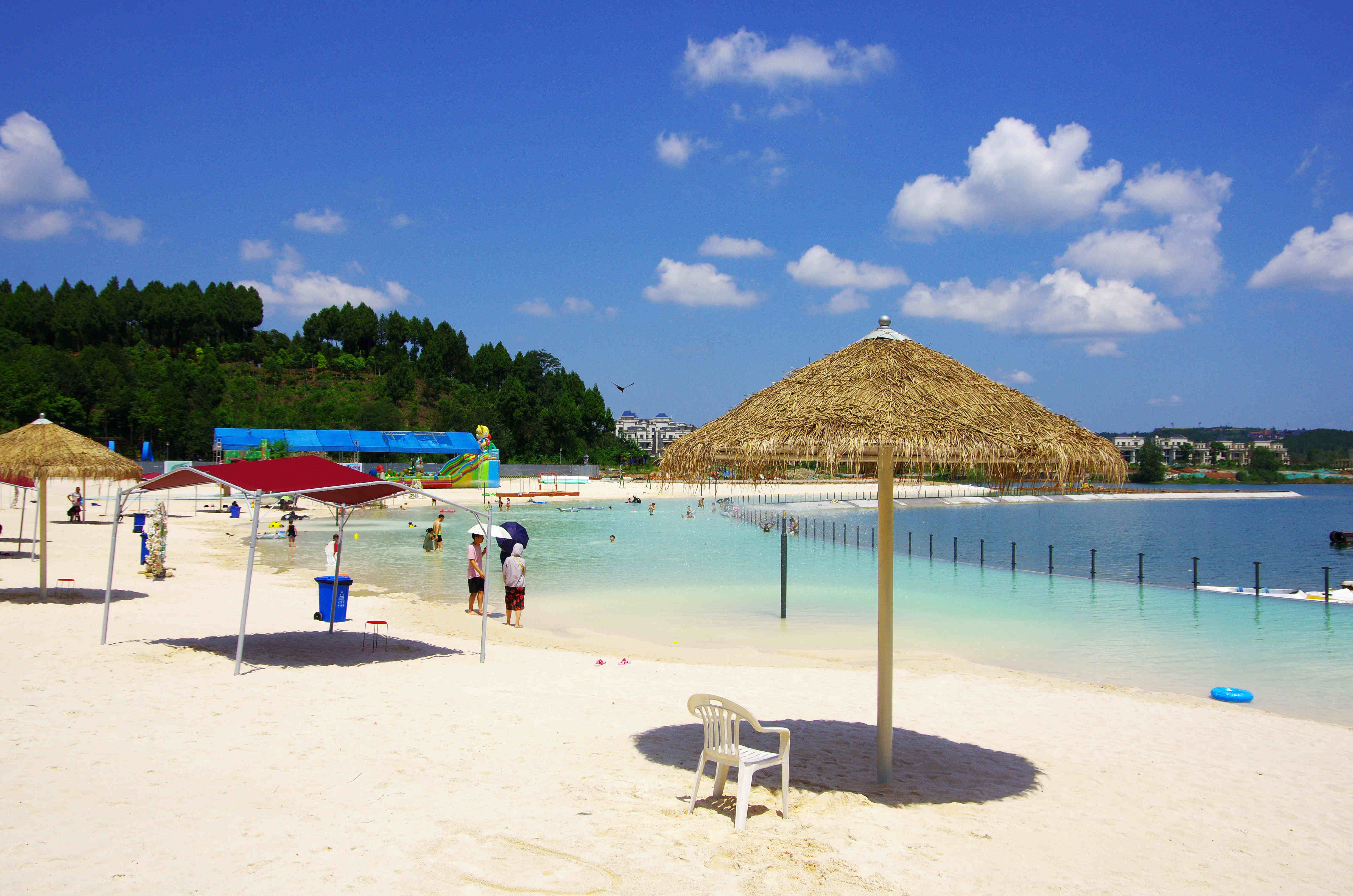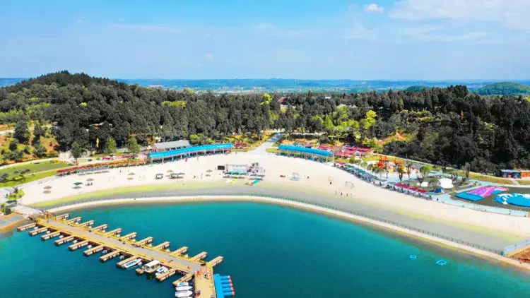 綿陽嘉成文化旅游有限公司是一家旅游開發(fā)公司,成立于2019年。 親水灣沙灘樂園項目由綿陽嘉成文化旅游有限公司開發(fā)運營,位于國家級水利風景區(qū)——綿陽市仙海水利風景區(qū),距綿陽市區(qū)15公里,車程約半個小時,是依托沉抗水庫建設(shè)的仙海風景區(qū)重點旅游項目。進入仙海風景區(qū)上坡向左進入環(huán)湖路前行1000米。項目總占地220畝,其中核心沙灘樂園占地100畝,現(xiàn)建成沙灘休閑、淺灘嬉水、水上運動,親子蹦蹦云、網(wǎng)紅多人秋千、人力過山車、水幕秋千、團隊拓展等項目十余個,還開設(shè)有特色中餐、仙海火鍋魚,自助燒烤等飲食項目。 近觀青山綠水,遠眺碧波蕩漾,清晨朝霞映翠、傍晚水天一色。親水灣沙灘主題樂園有可容納200人的沙灘會議室和30人的小型會議室;棋牌室16間; 商務KTV;餐飲中心可同時容納300人用餐;篝火晚會場地等,是婚禮壽宴、同學聚會、餐飲娛樂、商務會議、拓展培訓、家庭親子活動的首選之地。